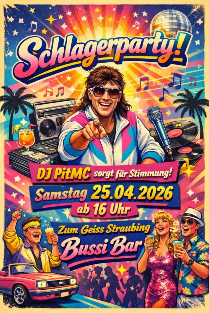 🎤✨ SCHLAGERPARTY IM 80er STYLE ✨🎤 Föhnfrisur richten, Glitzerhemd bügeln […]